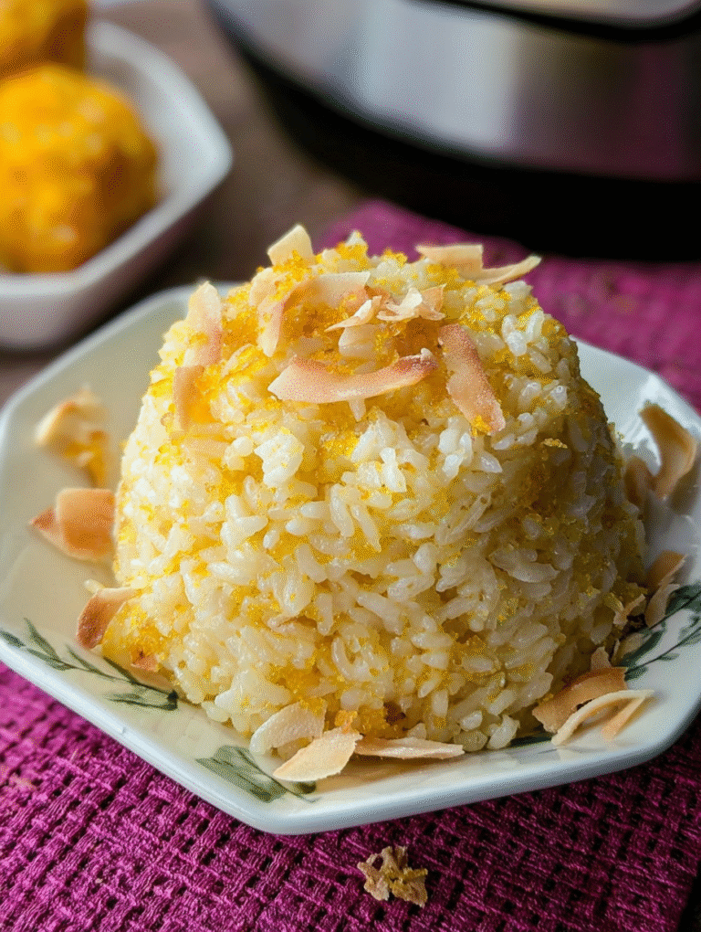 - Step 4: Den fertigen, heißen Reis in eine Schüssel geben und sofort mit der Hälfte der warmen Kokossauce übergießen. Gut vermischen, die Schüssel abdecken und 15–20 Minuten ruhen lassen, damit der Reis die Sauce vollständig aufnehmen kann.