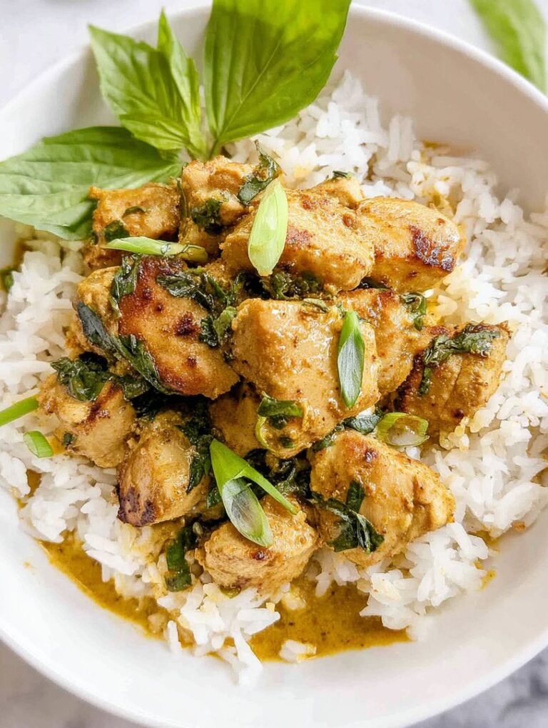 Basilikum-Hähnchen mit Kokos-Currysauce