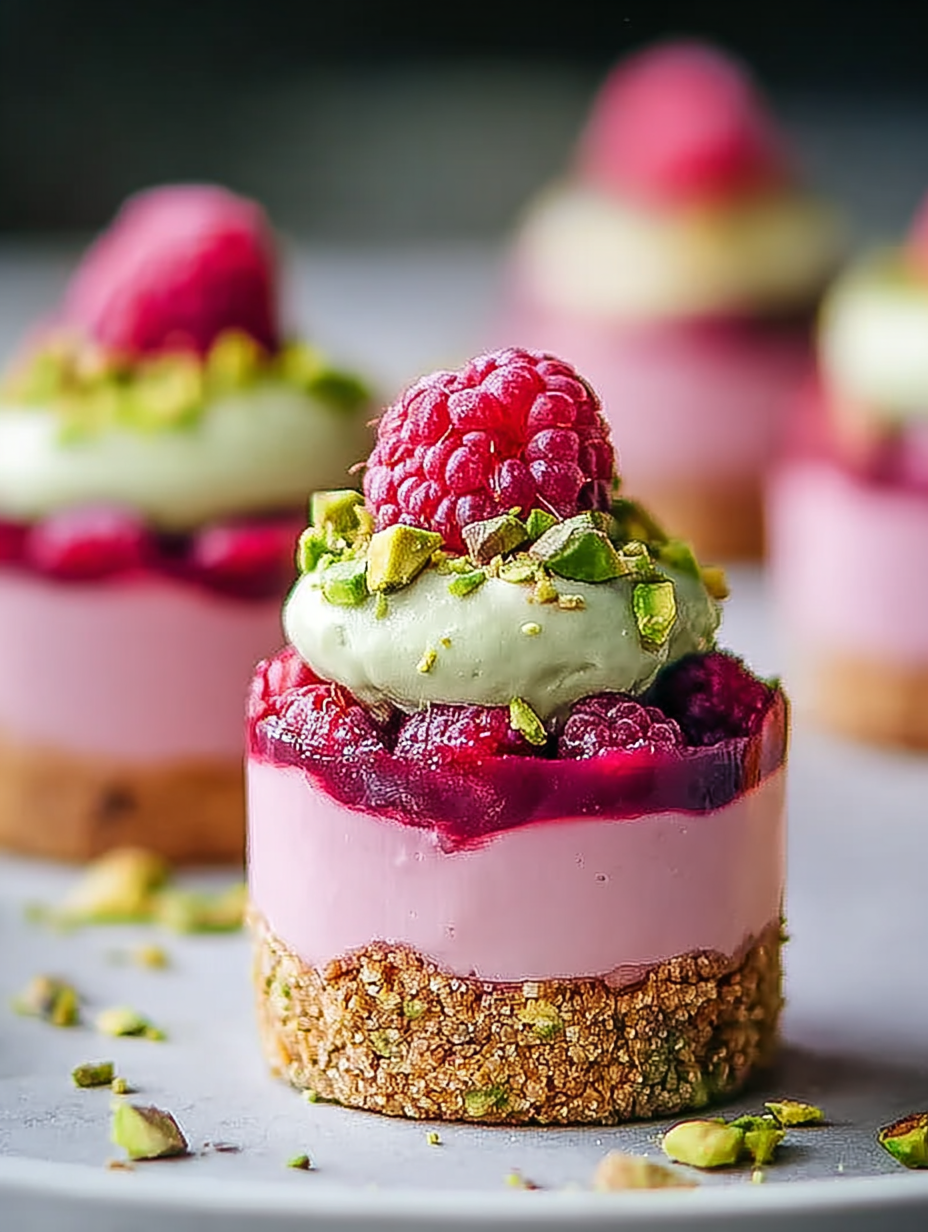 So bereiten Sie cremige Himbeer-Pistazien-Mousse-Törtchen zu