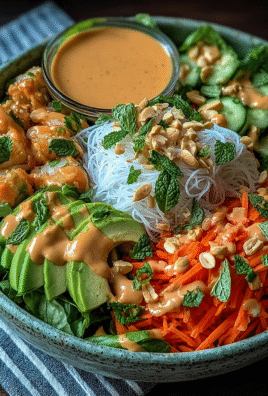 ist nicht nur ein blitzschnelles Gericht für heiße Tage, sondern auch eine wunderbare Möglichkeit, viel frisches Gemüse auf eine kreative Weise zu genießen. Verabschieden Sie sich von matschigen oder aufwendigen Rollen und begrüßen Sie diesen dekonstruierten Klassiker in Ihrer Küche. Egal ob als leichtes Abendessen, als gesunder Lunch im Büro oder als exotischer Hingucker bei der nächsten Gartenparty – dieser Salat überzeugt durch seine knackige Textur und das unwiderstehliche, cremige Erdnuss-Dressing. Er ist ein wahres kulinarisches Highlight, das garantiert für Begeisterung sorgt.