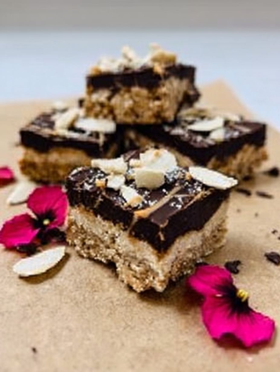 - Step 5: Die Form für mindestens 2 Stunden oder bis die Masse vollständig fest geworden ist in den Kühlschrank stellen. Vor dem Servieren die Riegel aus der Form heben und in gleichmäßige Stücke schneiden.