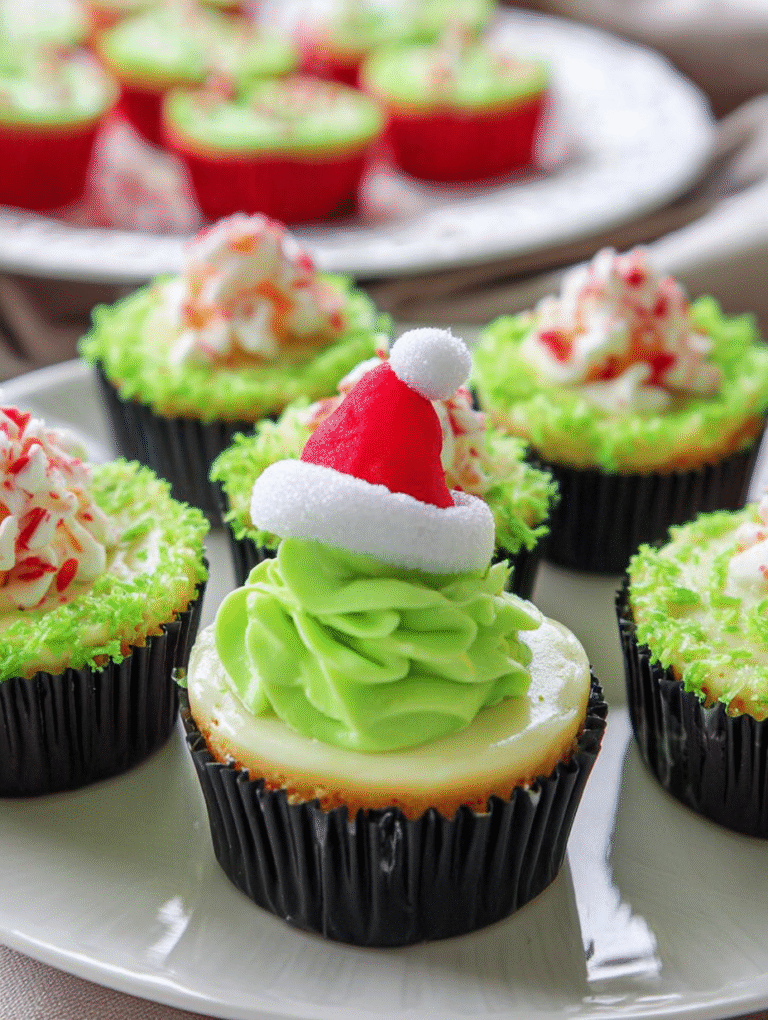 Wenn die Feiertage näher rücken und die Backlisten länger werden, brauchen wir Magie – oder zumindest Mini-Käsekuchen, die blitzschnell fertig sind und eine Prise Chaos versprechen. Diese kleinen grünen Sensationen sind die perfekten Grinch-Mini-Käsekuchen, die mit ihrer spritzigen Limettennote jedes Herz, selbst das des Grinch, dreifach wachsen lassen.