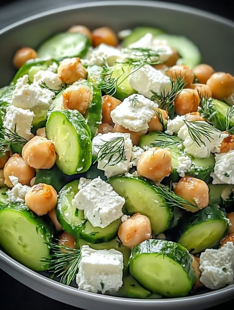 Erinnern Sie sich an diese heißen Sommertage, an denen man das Gefühl hat, innerlich zu schmelzen? Man braucht etwas, das gleichzeitig kühlt, sättigt und einen mit einem Lächeln zurücklässt. Genau dafür wurde dieserGurkensalat mit Feta und Kichererbsenerfunden, der die perfekte Mischung aus Cremigkeit und Knackigkeit bietet und einfach süchtig macht.