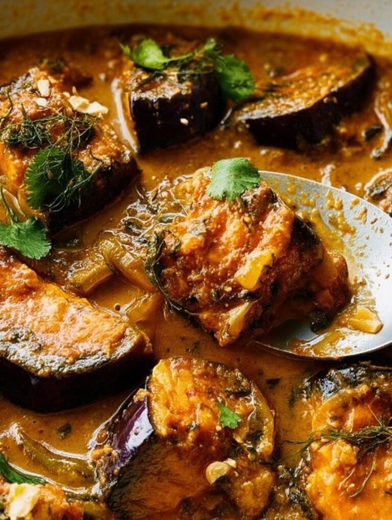 - Dieses lebendige Curry zeigt einen schönen Kontrast zwischen cremiger Kokosmilch und hellgrünen Kräutern, was sofort appetitlich aussieht.