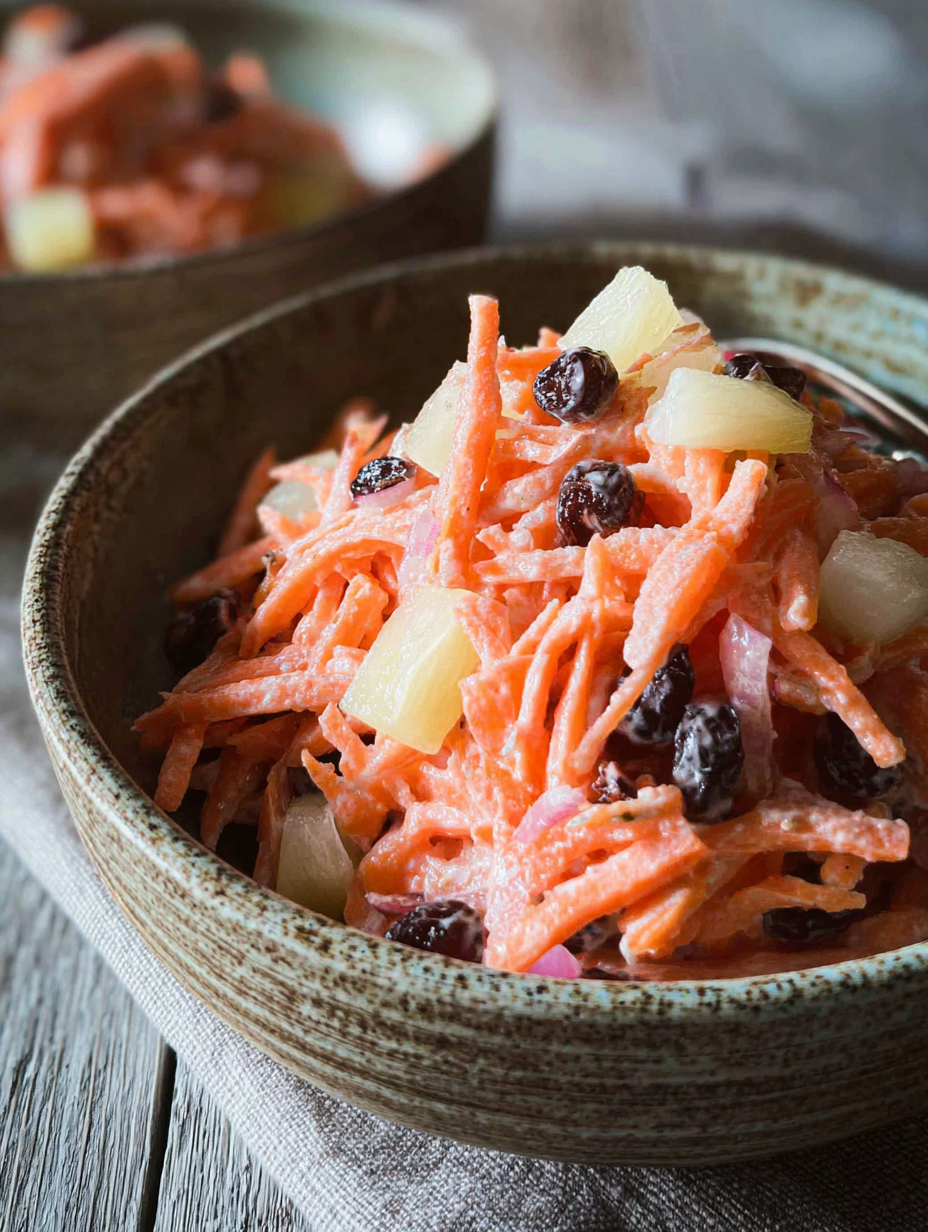 Genau das ist der Zauber dieses Salats. Er spielt mit Texturen und Geschmäckern, die man eigentlich nicht zusammenbringen sollte, es aber auf brillante Weise tun. Die Süße der Ananas und der Rosinen, die erdige, frische Knackigkeit der Karotten und die cremige, leicht säuerliche Umarmung des Dressings. Er ist die perfekte Balance zwischen herzhaft und Dessert – der ideale Begleiter für praktisch jedes Hauptgericht, sei es gegrilltes Rindfleisch oder zarter Truthahn.