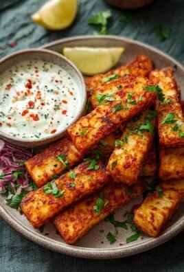 Knusprige Halloumi-Pommes aus der Luft mit würzigem Joghurt-Dip