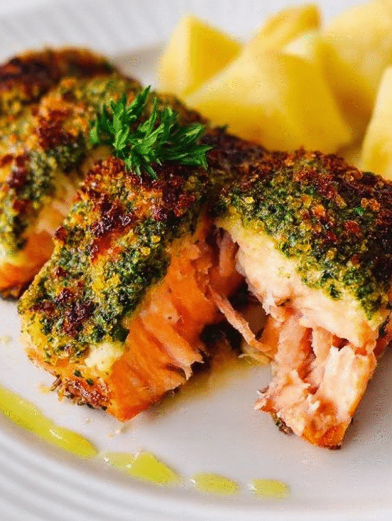 Zartes Lachsfilet, überzogen mit einer aromatischen Knoblauch-Parmesan-Panko-Kruste – in nur 20 Minuten gebacken! Dieses einfache Rezept bietet maximalen Genuss.