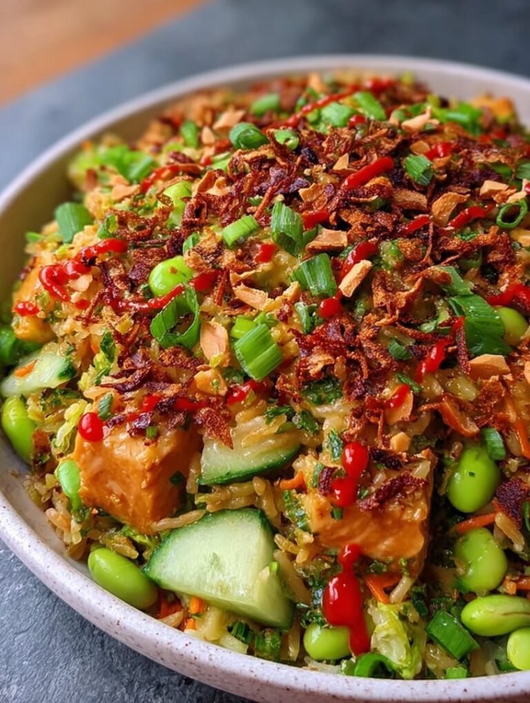 Stellen Sie sich vor: Die Sonne knallt, der Magen knurrt, aber Sie brauchen etwas Leichtes, das trotzdem einen ordentlichen Geschmacks-Punch mitbringt. Dieser Moment verlangt nach unserem unglaublichenKnuspriger Reissalat mit Erdnuss-Chili-Dressing – ein veganer Genuss. Vergessen Sie langweiligen Beilagensalat! Dieses Gericht ist ein Geschmackserlebnis – eine Symphonie aus knackigem Gemüse, cremigem Dressing und einem Hauch von feuriger Schärfe, die selbst den größten Fleischfan begeistert.