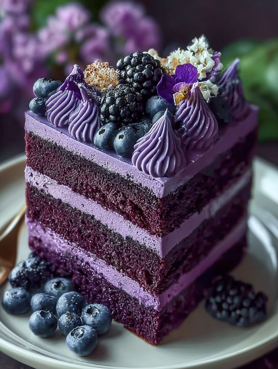 - Die leuchtend violette Farbe entsteht durch natürliche Färbemittel und macht diesen Kuchen zum absoluten Star jeder Kaffeetafel oder Feierlichkeit.