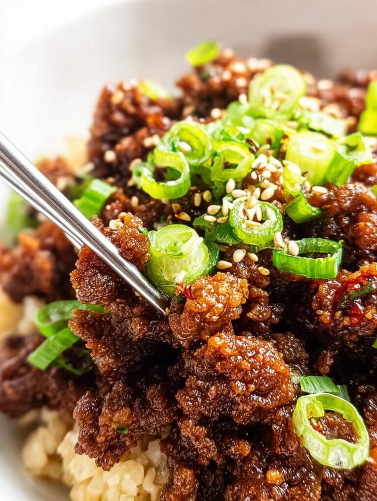 Ich habe dieses Gericht zum ersten Mal für Freunde zubereitet, die skeptisch gegenüber der Keto-Diät waren. Sie erwarteten fade Gemüsesuppen oder langweilige Hähnchenbrust. Als ich ihnen jedoch das duftende, glänzende Hackfleisch servierte, das mit grünen Frühlingszwiebeln und Sesamkörnern garniert war, verstummten die Zweifel schnell. Der beste Moment war, als mein Freund, der normalerweise drei verschiedene Beilagen braucht, um satt zu werden, nur mit dem Hackfleisch und etwas Blumenkohlreis völlig zufrieden war. DiesesLeckeres, scharfes Keto-Hackfleisch aus Koreaist nicht nur ein Rezept, es ist ein Stimmungsaufheller.