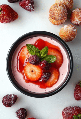 Für eine asiatisch inspirierte Abwandlung probieren Sie eine intensive Matcha-Glasur. Der leicht herbe, erdige Geschmack des Grüntees bildet einen fantastischen Kontrast zur Süße des Donuts. Oder wie wäre es mit einer fruchtigen Glasur? Pürieren Sie frische Mangos und mischen Sie das Püree mit Puderzucker. Achten Sie darauf, nicht zu viel Mangopüree zu verwenden, damit die Glasur nicht zu dünn wird. Alternativ kann man Mangosaft mit etwas Agar-Agar leicht andicken und dann mit Puderzucker vermischen, um eine schöne glänzende Oberfläche zu erhalten. Diese tropischenMochi-Donuts nach philippinischer Arteignen sich hervorragend für heiße Sommertage.