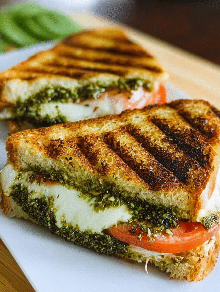 Cremiger Käse trifft auf aromatisches Pesto – ein Traum! Sie werden lachen, wie schnell dieses Gericht zubereitet ist und wie fantastisch diese Mozzarella- und Pesto-Sandwiches schmecken.