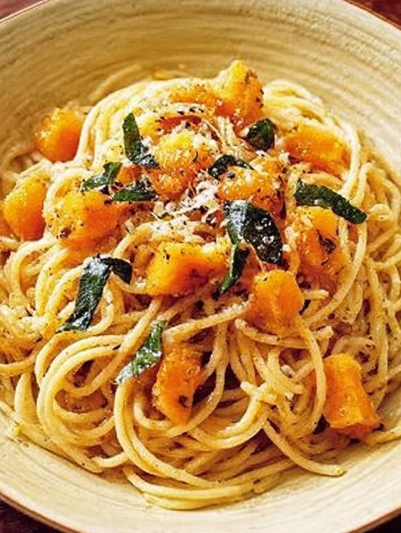 Herbstgenuss pur: Al dente Spaghetti treffen auf süßlichen Hokkaido, erdige Pilze und aromatischen Salbei. Der knusprige Truthahnspeck sorgt für den unwiderstehlichen Crunch.