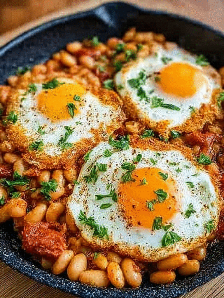 Vergessen Sie langweilige Rühreier und öde Haferflocken. DieSpanische Bohnen und EierPfanne, oft unter dem charmanten Namen Huevos con Habichuelas bekannt, ist eine kulinarische Umarmung. Es ist das perfekte Zusammenspiel von zartschmelzenden, würzigen Bohnen, tiefem Raucharoma und perfekt pochierten Eiern, deren flüssiges Eigelb sich wie flüssiges Gold über die gesamte Pfanne ergießt. Und das Beste daran? Es ist unglaublich einfach und in weniger als 30 Minuten zubereitet.